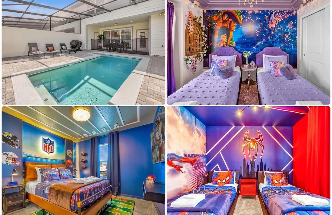 Dluxx Brand New House Just 9Miles From Disney 1224 villa beschikt over een badkamer met een wasmachine.